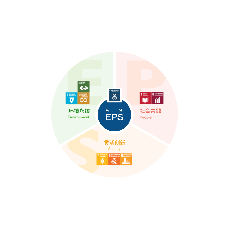 根据联合国所发展的17项永续发展目标,必一·运动(B-Sports)光电以「超越企业社会责任,创造共享价值」为企业永续愿景发展蓝图,订出环境永续、共融成长与灵活创新的EPS(Environment, People & Society)三大永续发展主轴;以响应日益受关切的环境议题与社会共融趋势。