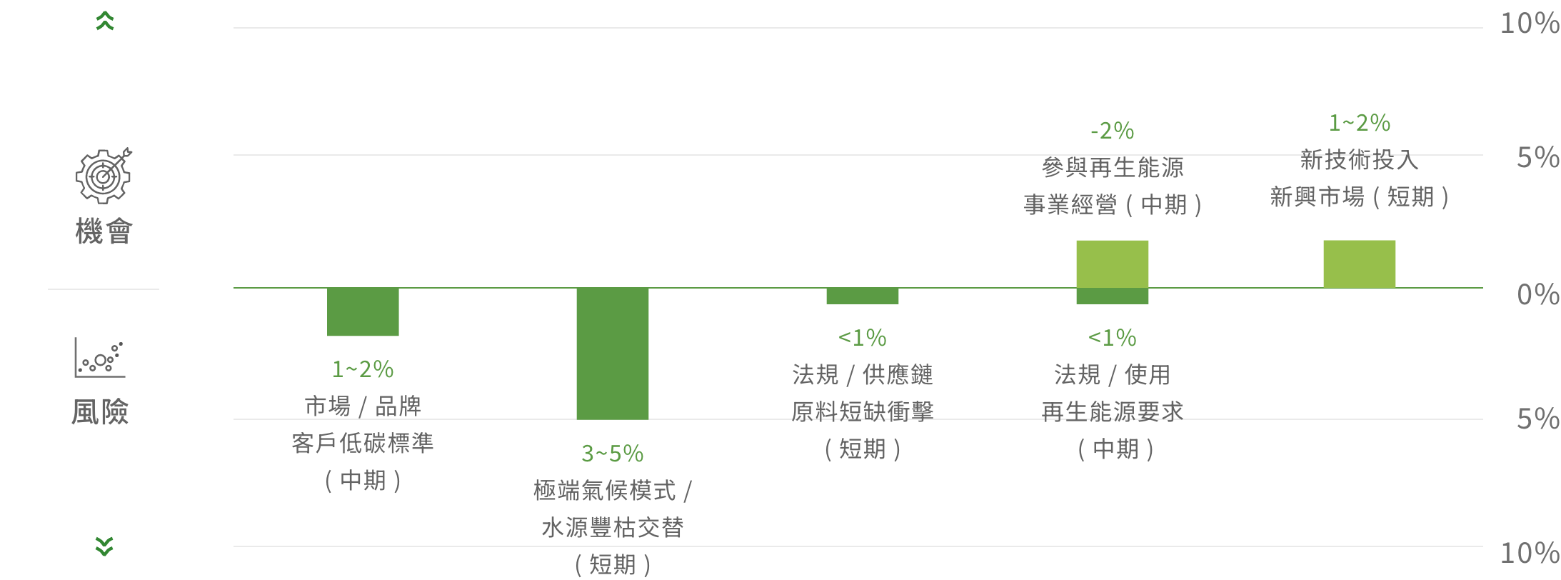 氣候風險與機會財務衝擊評估結果佔年營業額之比例